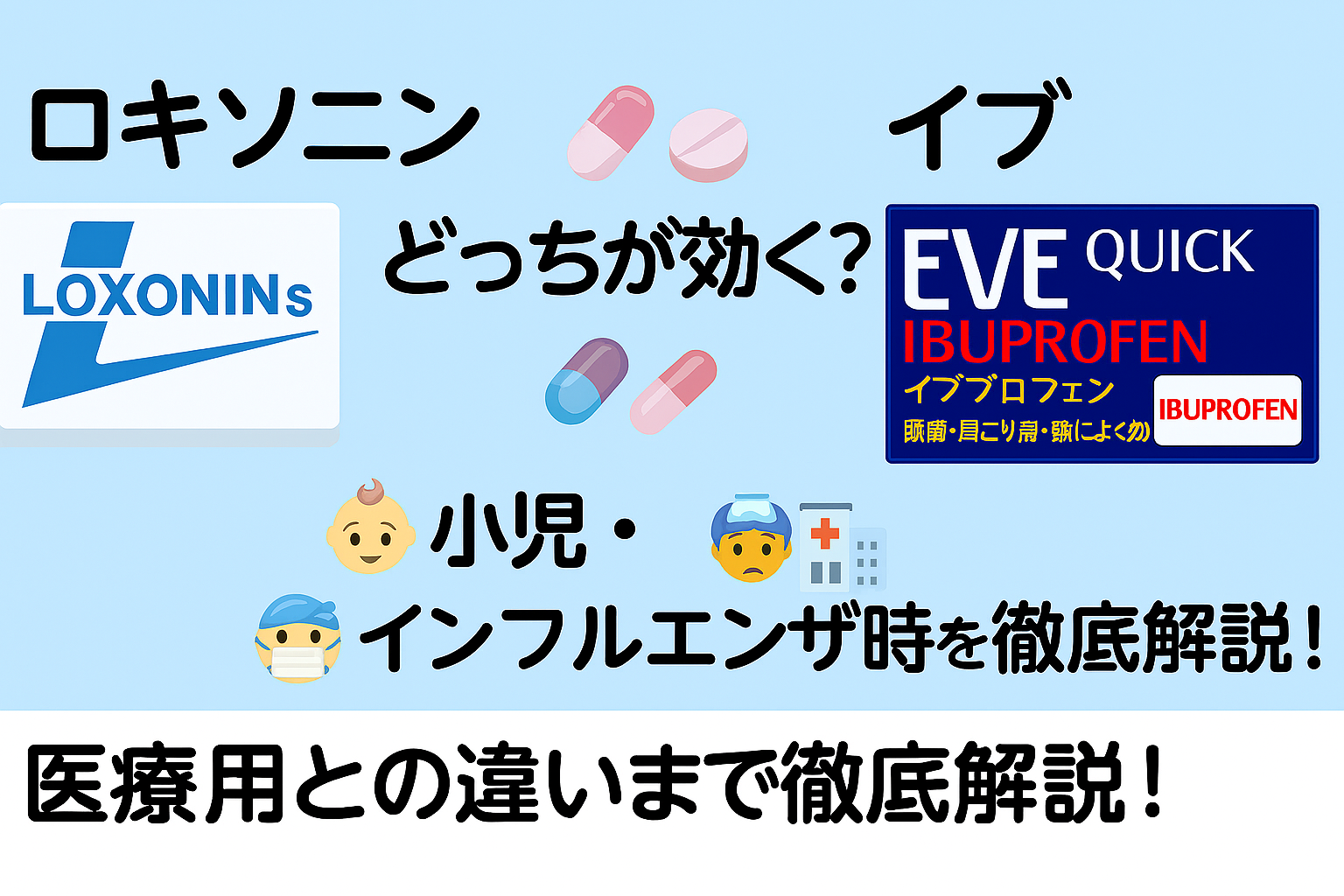 薬 💊ロキソニン vs イブ:どっちが効く?👶小児・🤒インフルエンザ時・🏥医療用との違いまで徹底解説! ロキソニンとイブの違いや使い分けを薬剤師が解説。小児やインフルエンザ時の注意点、医療用との違いもわかりやすく紹介します。 2025.09.26 薬