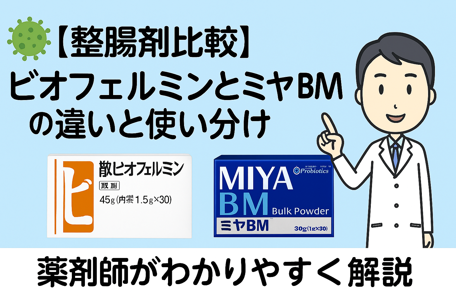 薬 🦠【整腸剤比較】ビオフェルミンとミヤBMの違いと使い分け|薬剤師がわかりやすく解説 ビオフェルミンとミヤBMの違いや使い分けを薬剤師が解説。整腸剤の選び方や抗生剤服用時のポイントも紹介。 2025.09.20 薬